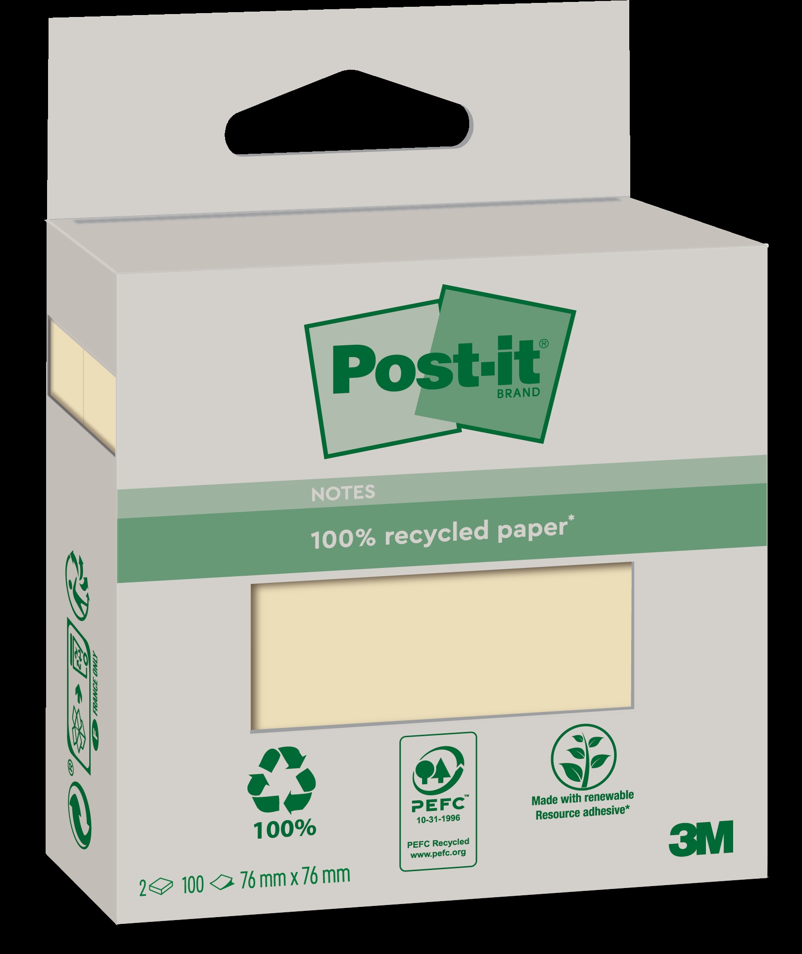 • Post-it® Recycled Notes er fremstillet af 100 % genbrugspapir – PEFC RECYCLED certificeret Nature kollektionen er fuld af pastelfarvet perfektion og bringer et frisk pust til dit skrivebord Klæbemiddel fra fornybare råvarer, hvor 60 % kommer fra flerårige planter Download den gratis Post-it® app, så du med det samme kan nedskrive og gemme dit arbejde og dele noter med teamet uden gentagelser eller forsinkelser Post-it® Recycled Notes er fremstillet af 100 % genbrugspapir og med klæbemiddel af fornybare råvarer, hvor 60 % kommer fra flerårige planter. De er PEFC RECYCLED-certificerede og stammer fra certificerede, fornybare og bæredygtigt forvaltede skove.