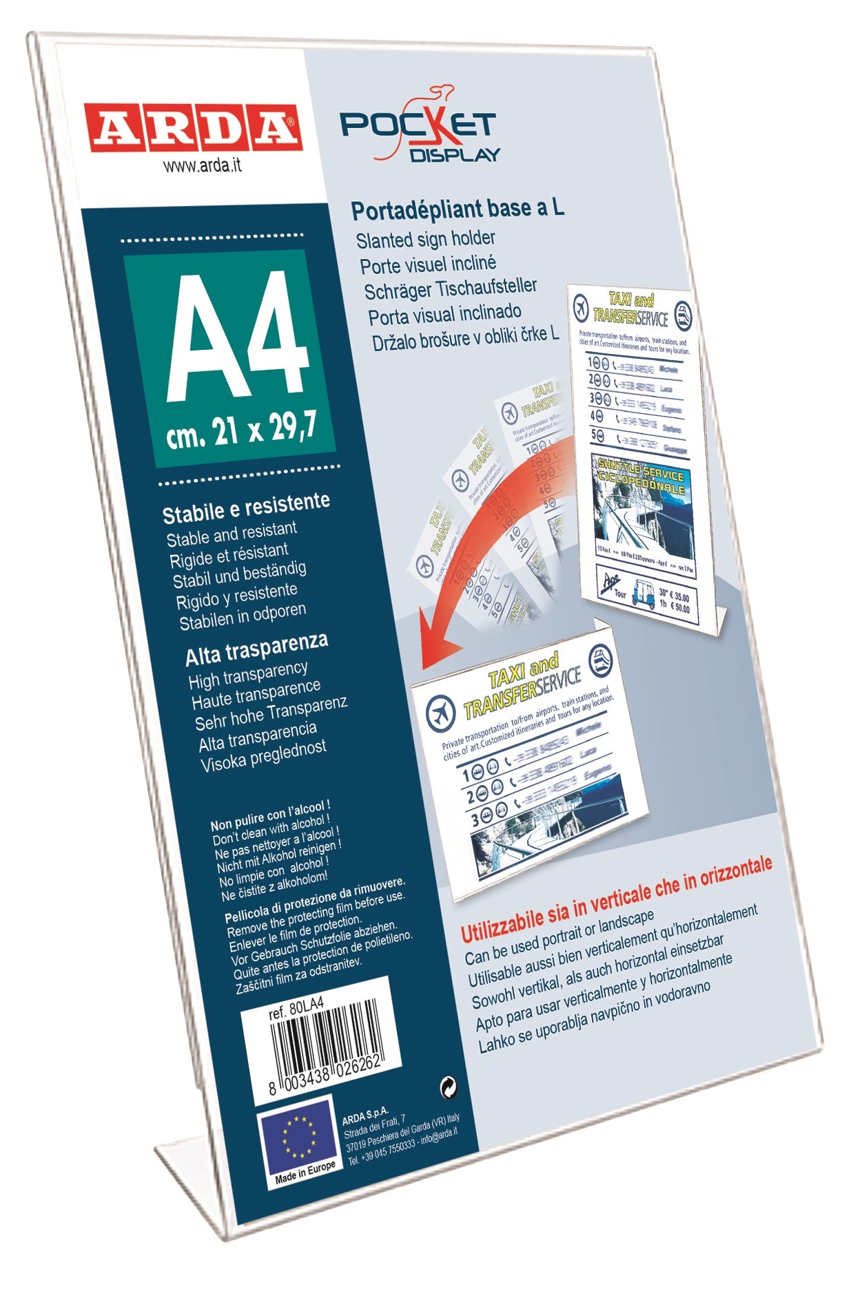 • Skilteholder i A4 størrelse med L-fod. Produceret af glasklar polystyren.