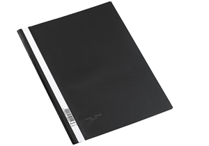Universalmappe A4, sort Robust præsentationsmappe med metalklemme i ryggen og transparent forside.. Fastholder papirene effektivt.Kapacitet: 25 arkPP-folie