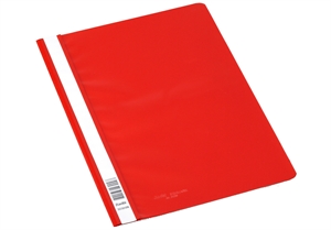 Universalmappe A4, rød Robust præsentationsmappe med metalklemme i ryggen og transparent forside.. Fastholder papirene effektivt.Kapacitet: 25 arkPP-folie