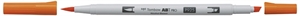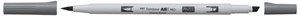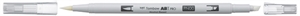 ABT PRO er en ekstremt fin, alkohol-baseret marker. Den har et særligt tyndt skaft, som hviler komfortabelt i hånden. Markeren har to spidser: en bred, skrå spidse og en fleksibel penselspids. Den skrå spids er velegnet til farvning af større arealer og penselspidsen er god til at tegne linjer med varierende tykkelse; Den er lavet af nylon og derfor særligt fleksibel og dynamisk. Så snart der ikke længere lægges tryk på spidsen, vender den tilbage til sin oprindelige form – den er derfor nem at styre. Den meget fine spids, fremstillet i nylon af høj kvalitet, får ABT PRO markeren til at glide naturligt og elegant henover papiret. Markerne gør det derfor muligt at opnå særligt kunstneriske og professionelle resultater. ABT PRO fås i 107 intense farver og som blenderpen. Den alkohol-baserede blæk giver klare farver og stribefri dækning. Ved at tilføje ekstra farvelag, kan man øge dybder og skygger - og farverne kan blandes og intensiveres. ABT PRO kan bruges overalt, hvor der er beho