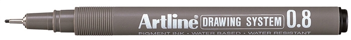• Tegnepen med 0,8 mm metalindkapslet plastspids. Pennen er vandfast efter at have tørret og bleges ikke. Indeholder vandbaseret blæk uden Xylen.
