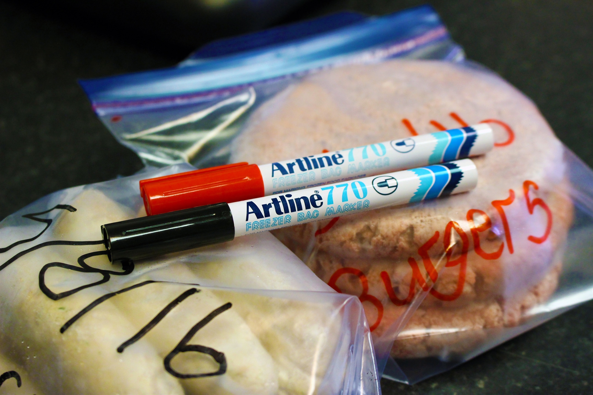 • Permanent Marker med 1 mm rund og ekstra blød spids til markering på frosne poser eller frosne madopbevarinsbokse. Markeren tørrer med det samme. Kommer i aluminiumshylster og indeholder permanent blæk uden Xylen.
