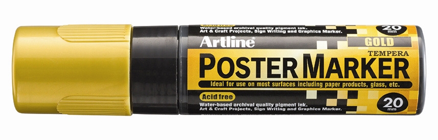 • Uigennemsigtig Poster Marker med 20 mm rund spids til pap, metal, plastik, glas, træ, gummi, sten og meget mere. Ideel til plakater, skilte og menutavler. Markeren indeholder en uigennemsigtig pigment blæk som er resistent overfor vand og blegning og kan overmales uden farven trænger igennem. Optimal til skyggelægning, detaljer og medium tekst. Syrefri.