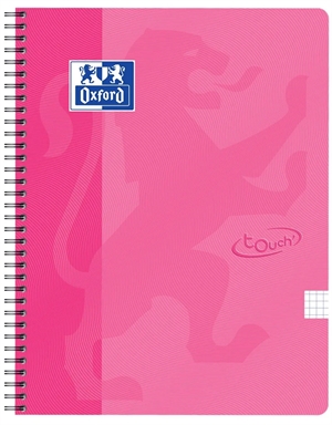 OXFORD Touch Pink notesbog A4+, kvadreret 5x5 mm. Høj kvalitet med tykt 90 g Optik Paper. Kraftig dobbeltspiral. 70 aftagelige ark = 140 sider. Vand og smudsafvisende Soft Touch omslag. Arkene er kompatible med den gratis Scribzee-smartphoneapp, så du nemt kan scanne, gemme og organisere dine noter.