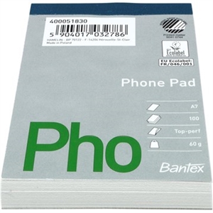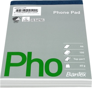 Bantex telefonblok, A5, linjeret, uhullet