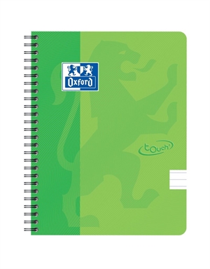 OXFORD Touch Grøn notesbog A5+, linjeret. Høj kvalitet med tykt 90 g Optik Paper. Kraftig dobbeltspiral. 70 aftagelige ark = 140 sider. Vand og smudsafvisende Soft Touch omslag. Arkene er kompatible med den gratis Scribzee-smartphoneapp, så du nemt kan scanne, gemme og organisere dine noter.