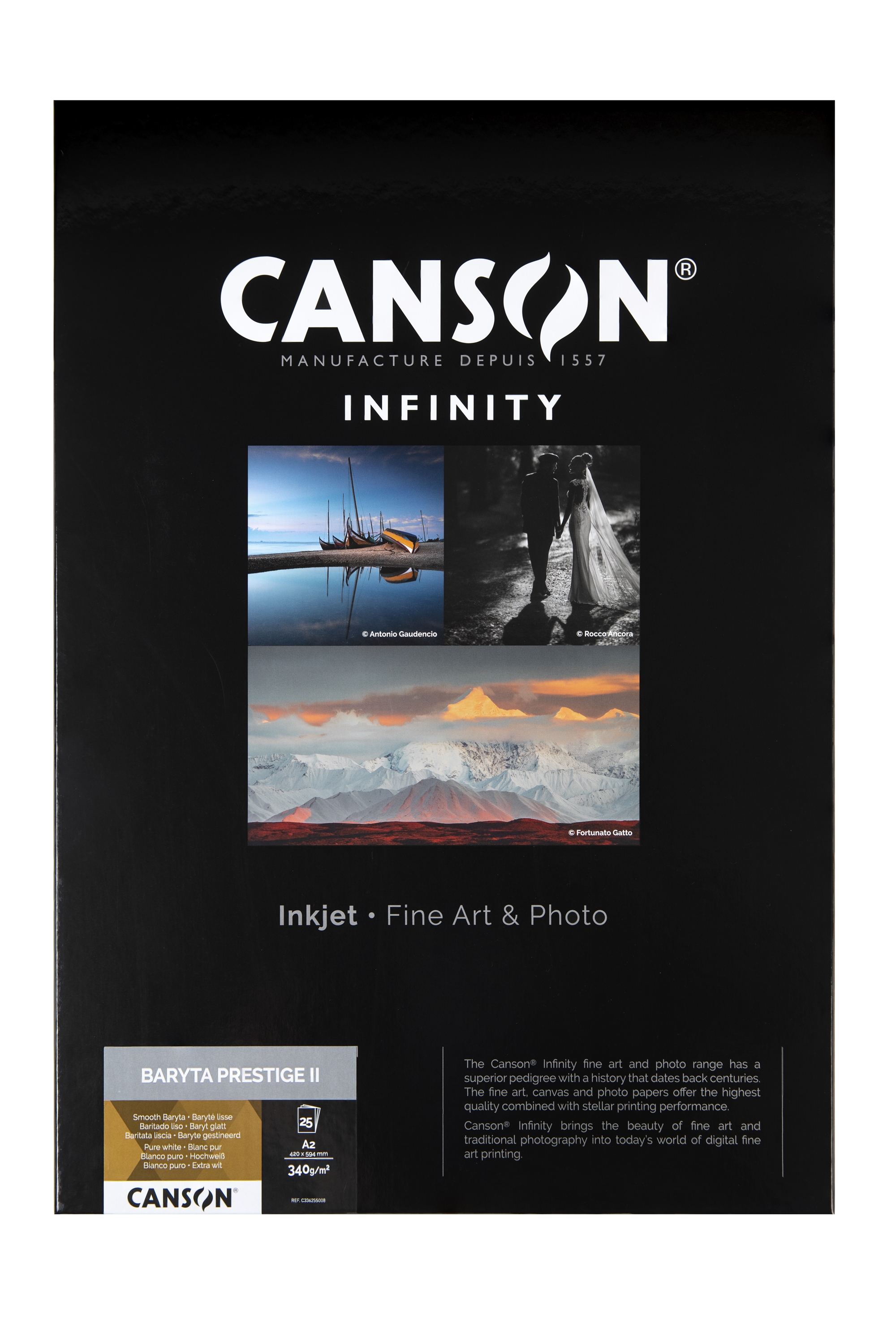 Beskrivelse af Canson Baryta Prestige II 340 g/m² - A2, 25 ark (FSC)