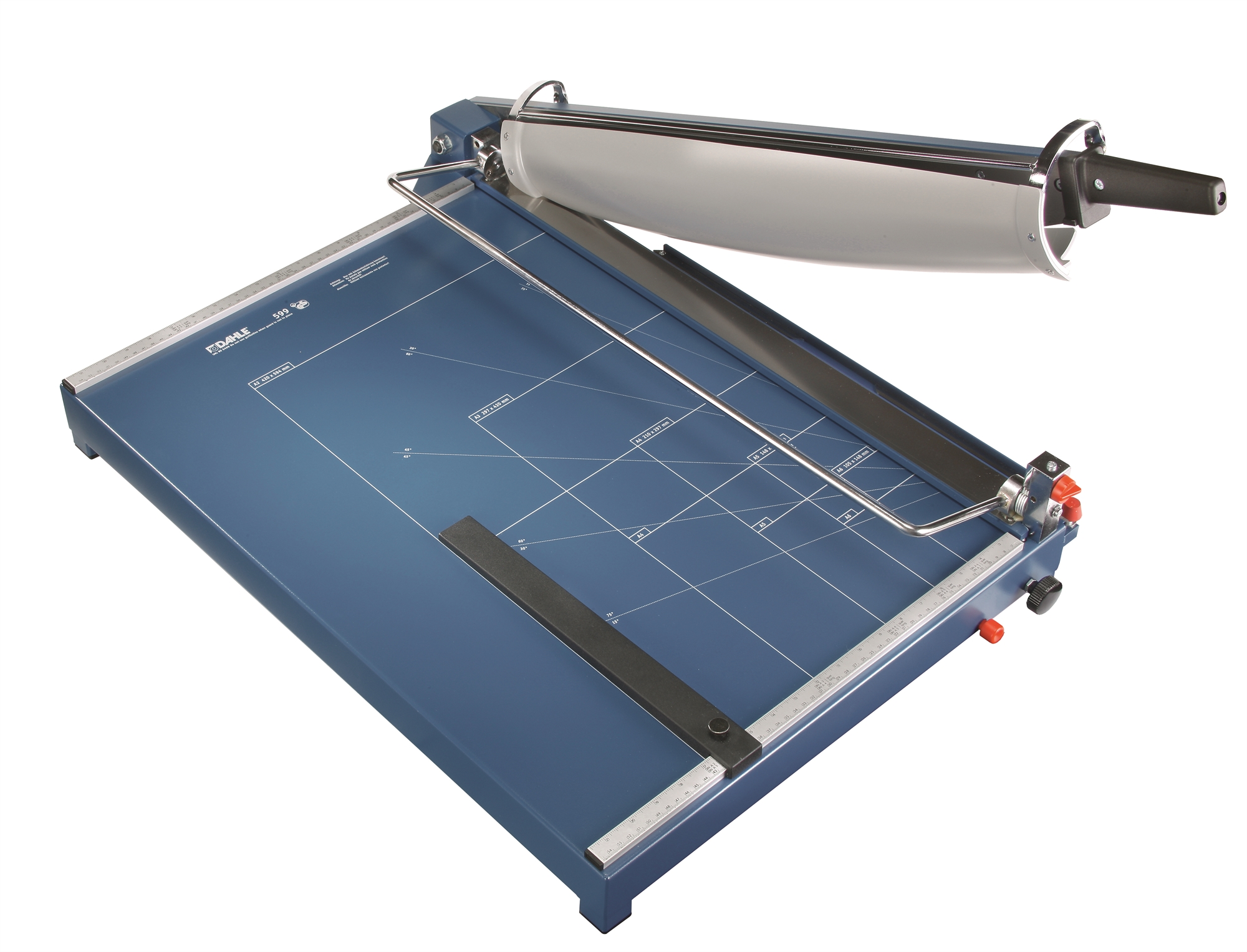 • Dahle 599 er en yderst brugervenlig guillotin med et robust metalbord og skridsikre gummifødder, som egner sig perfekt til professionelt brug. Denne høj kvalitets skæremakskine kommer med et ergonomisk formet håndtag. Justerbar, skruefæstet bagstop i metal til hurtigt at finde det rigtige format - kan bruges på begge skalastænger og Højkvalitets, genskærpes knive lavet af Solingen stål for langvarig skærekvalitet-