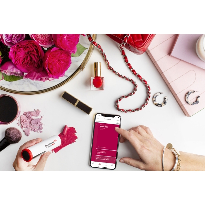 ColorReader-appen opretter forbindelse til din smartphone (iOS eller Android) via Bluetooth og viser de nøjagtige målinger med en nøjagtighed på over 90 %.
