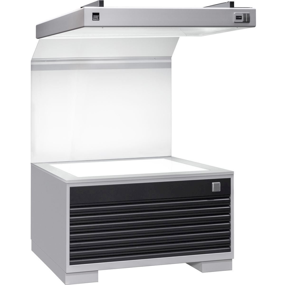 • The classic colour viewing combination that consists of a colour proofing light and a cabinet for storing prints and proofs will now be extended with a transmissive lighting unit. Thereby standardised D50 lighting is available from above and below.