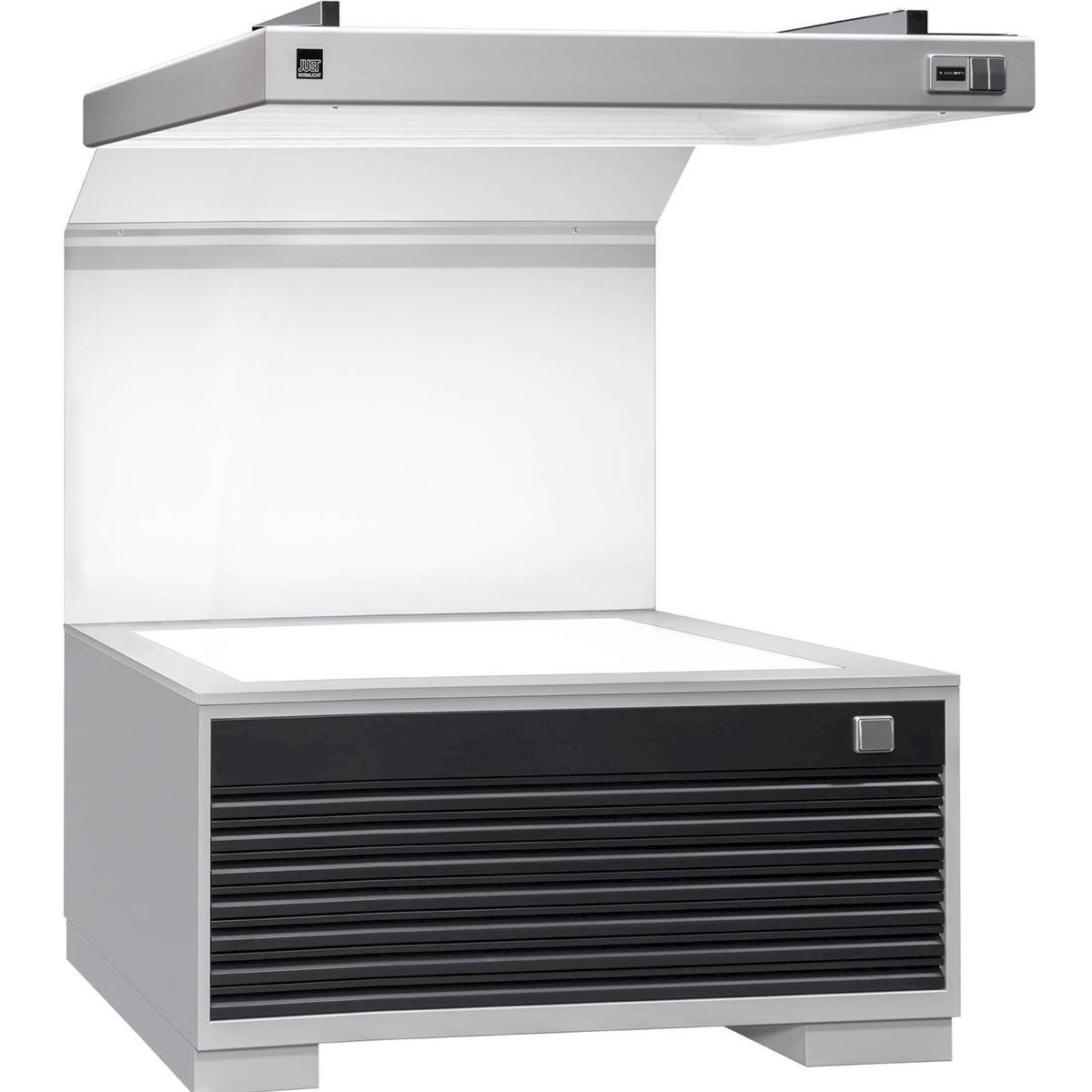 • The classic colour viewing combination that consists of a colour proofing light and a cabinet for storing prints and proofs will now be extended with a transmissive lighting unit. Thereby standardised D50 lighting is available from above and below.