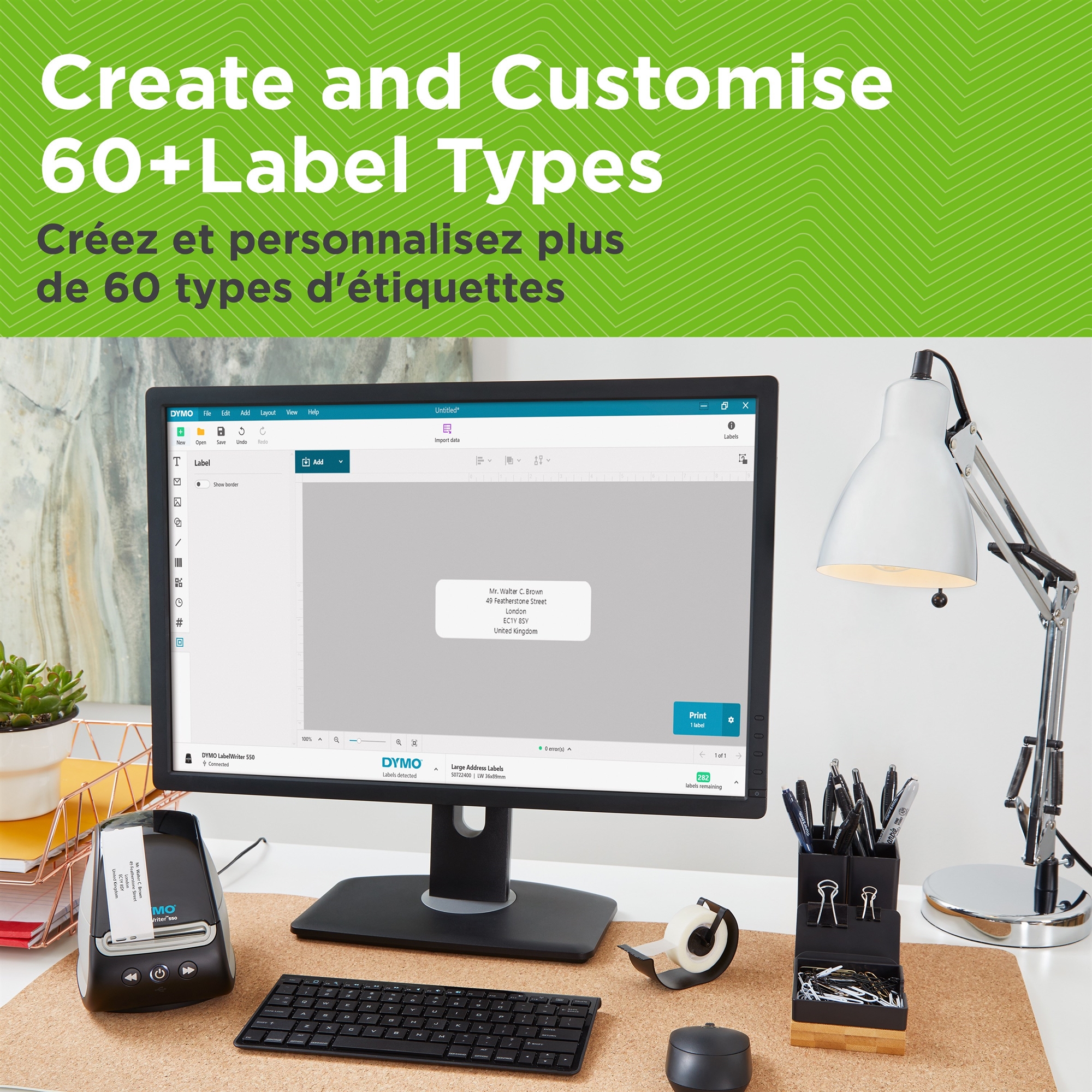 • Tilpas og udskriv etiketter til adresser, brevordnere, stregkoder, navneskilte m.m. fra PC eller Mac® med DYMO Connect® software til desktop