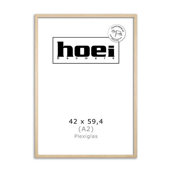Beskrivelse af Egetræsramme til foto og plakaterer 42 x 59,4 PLEXI cm ( A2 )