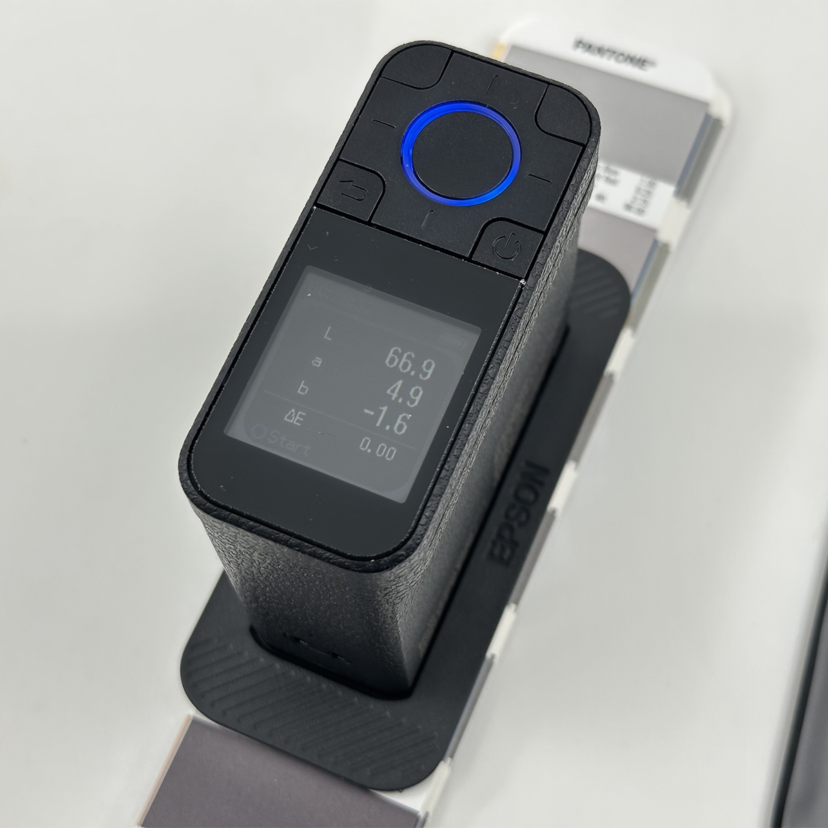 Denne brugervenlige enhed er det første spektrofotometer, der er udviklet af Epson, og måler farver præcist, konsekvent og hurtigt.