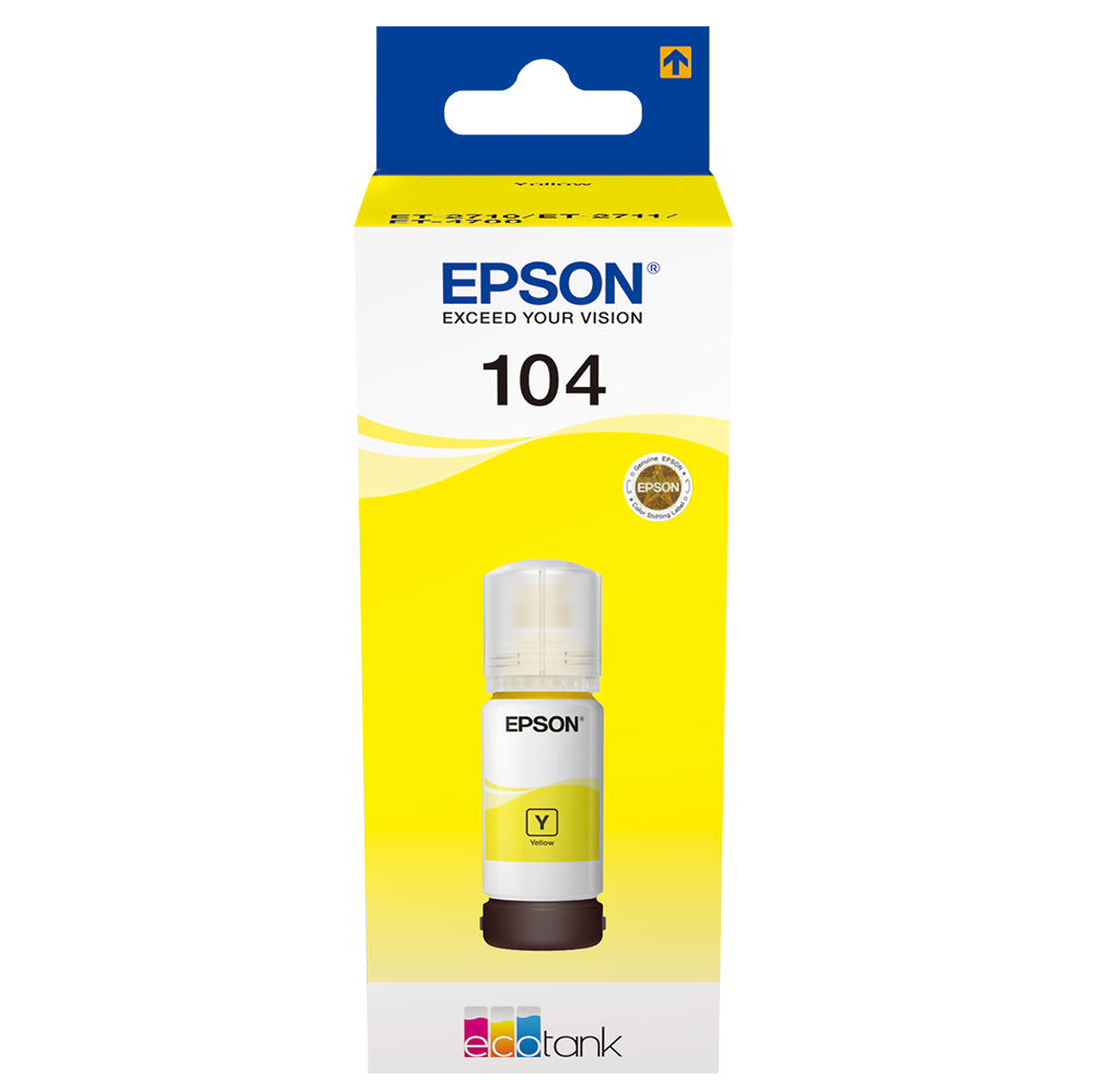 Epson T104 Yellow EcoTank blækflaskeEpson T104 Yellow EcoTank blækflaske