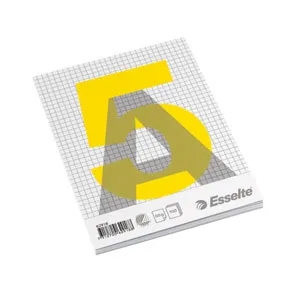 • standardblok Esselte A5, 100 ark, kvadreretLimet blok uden perforering, nemt at udtage bladene. 5x5 mm kvadrering. Kraftigt bagpap giver god støtte, når der skrives på blokken. God, træfri papirkvalitet, ideel skriveblok - blækket fordeler sig jævnt uden at klatte. Miljømærket med den nordiske Svane.