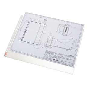 • Quality pocket for everyday use. Convenient storage of of large A3 documents in lever arch files and binders. - Embossed 0.09 mm recyclable PP foil, copysafe - Opening at top for easy removal of papers without releasing binder mechanism - 11 holes for universal use - For A3 format