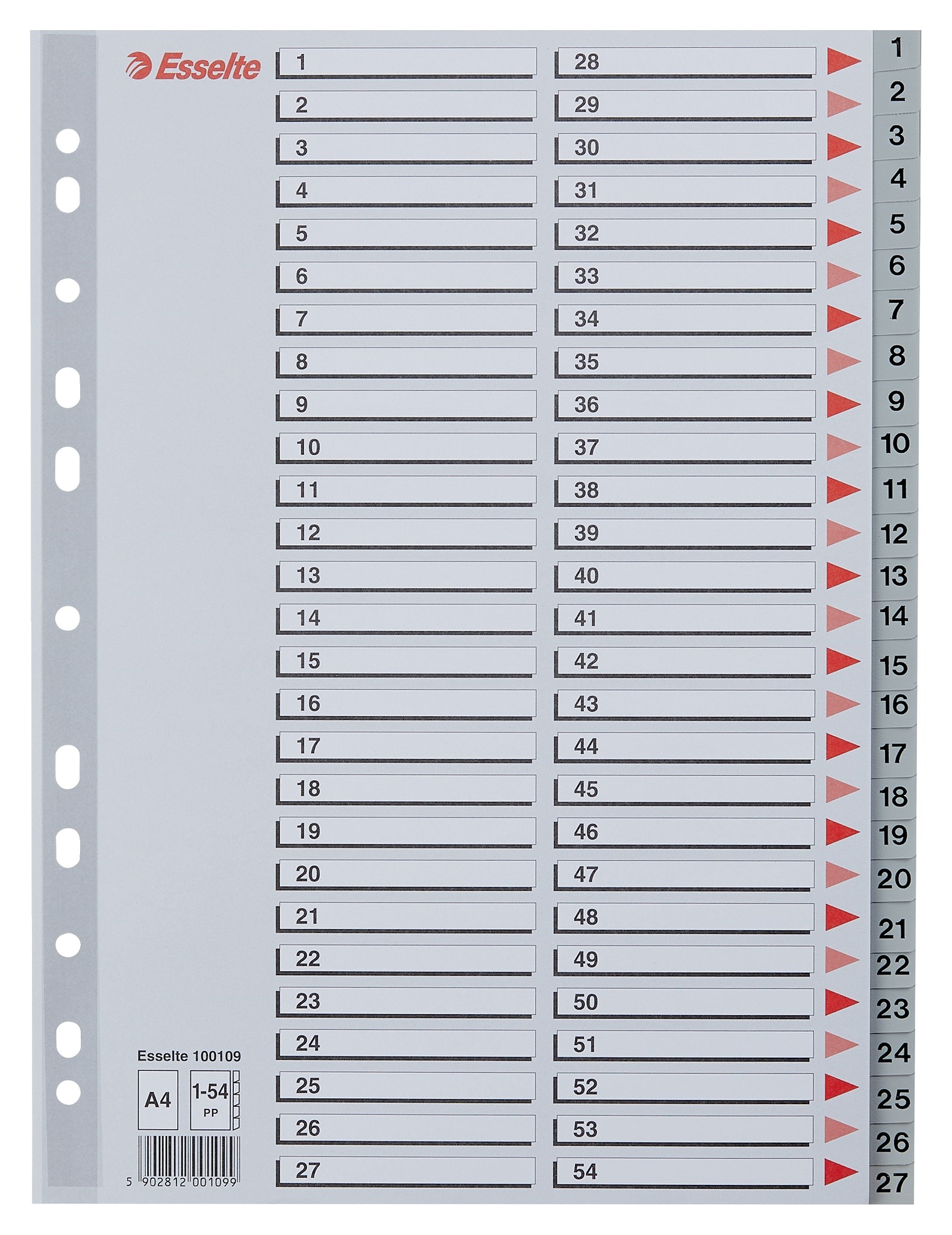 Beskrivelse af Esselte Register PP A4 1-54 grå