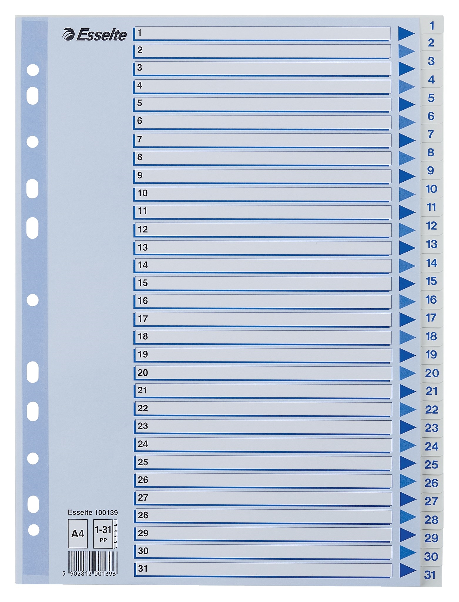 Beskrivelse af Esselte Register PP A4 1-31 hvid