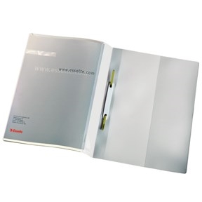 • Tilbudsmappe i PVC med forside i dobbelt plast til indstik af egen forside, hvid90 mm bred lomme indvendig.Metal arkiveringsmekanisme med plastikoverliggerTil A4 format