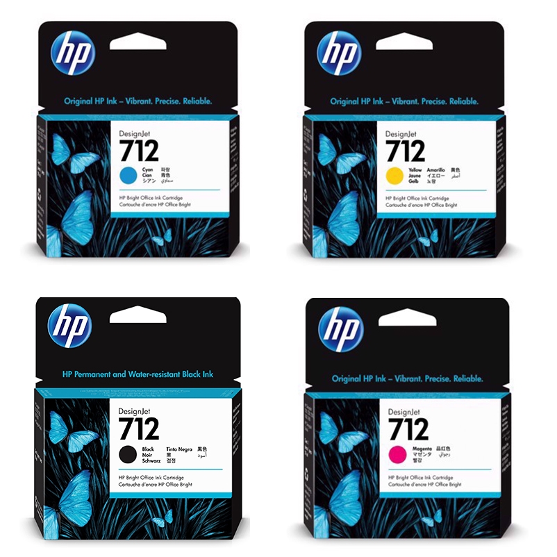 Fuldt sæt blæk HP 712 blækpatroner til HP Designjet