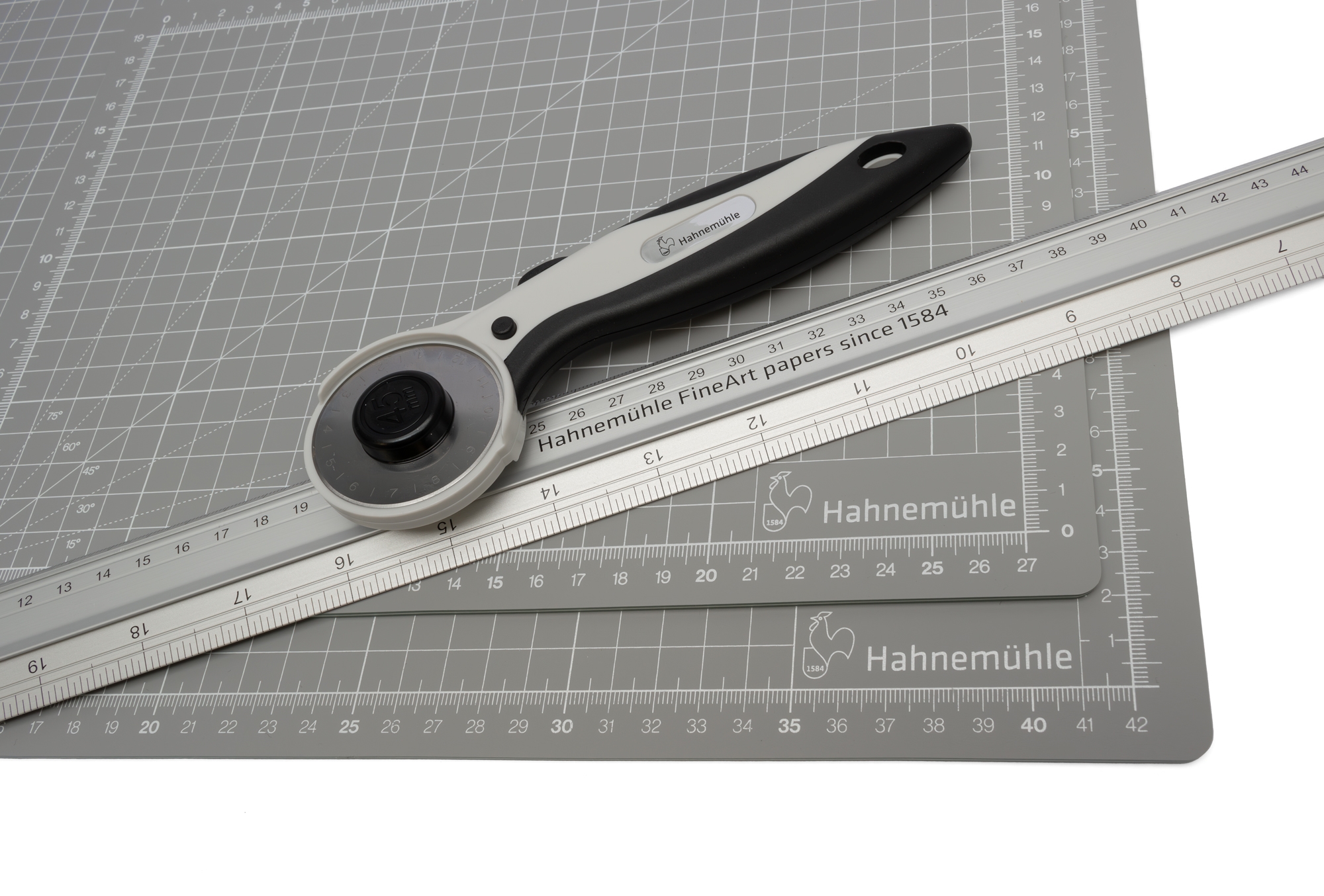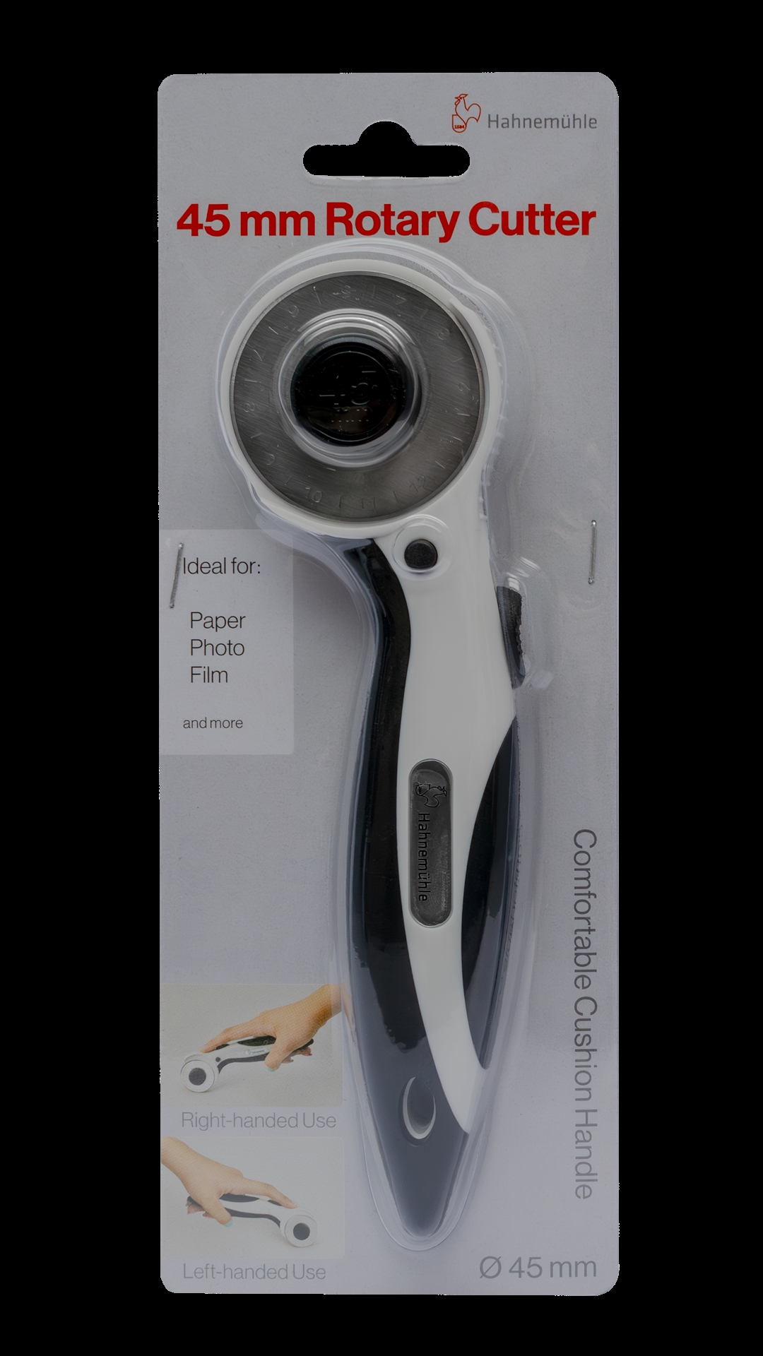 • Hahnemühle ergonomiske roterende kniv er din perfekte ledsager til præcis og ubesværet skæring - uanset om det er papir, fotos, film eller andre materialer.