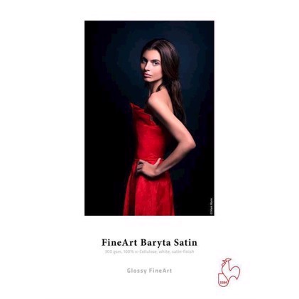 Hahnemühle FineArt Baryta Satin blev lanceret ved Photokina i 2014 er og et 300 grams 100% syrefrit alfa-cellulose med hvid satin/pearl overflade.