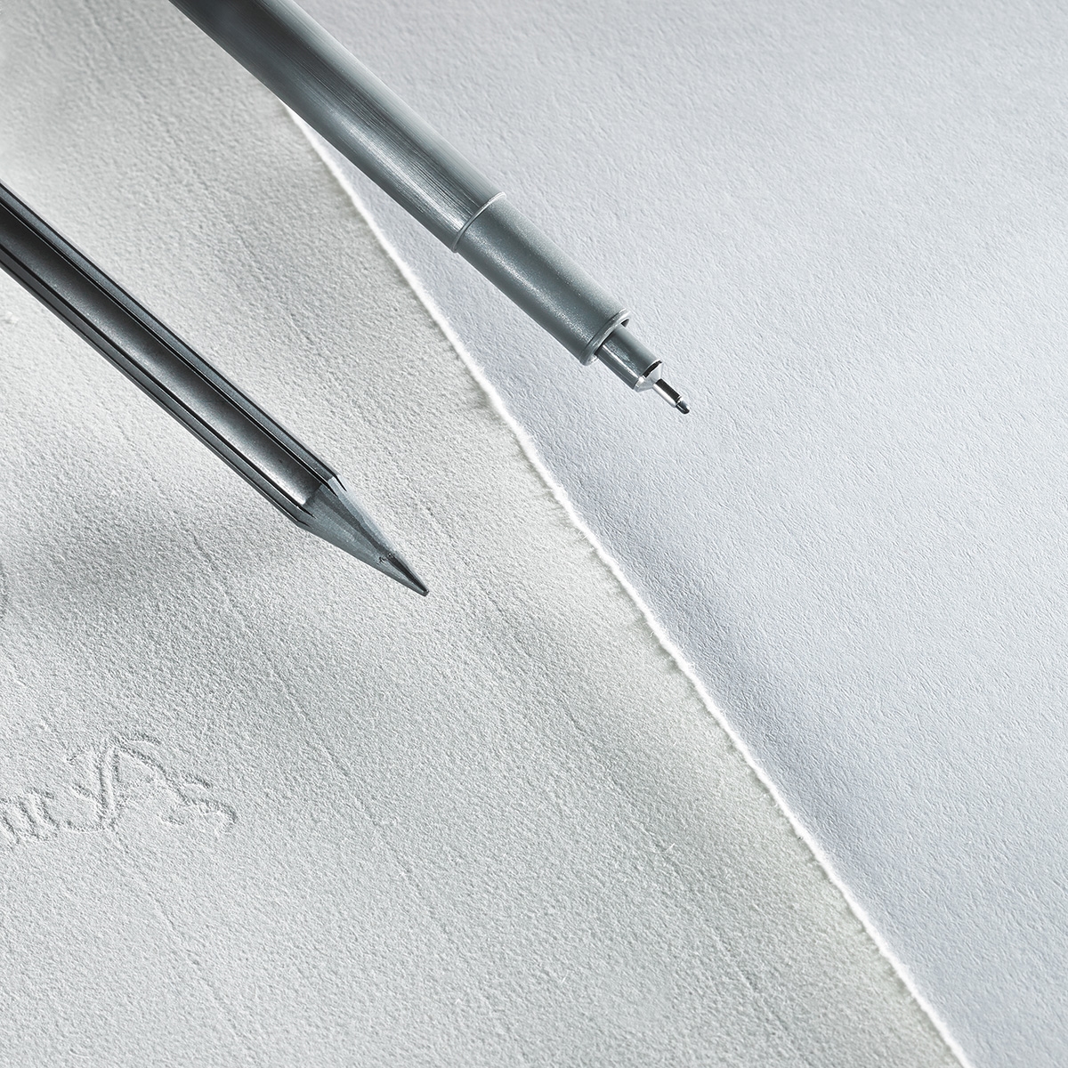 To make images on matt and heavily textured paper unmistakable, our pigment liner comes in combination with a high-quality black graphite pencil in archival quality. The noble pencil is soft enough not to push through and hard enough to get the signature on the paper. Both signing pens are available in a modern black sliding case.
