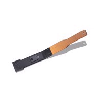 Made of lacquered hard wood with hickey remover wedged in and fastened in place.
