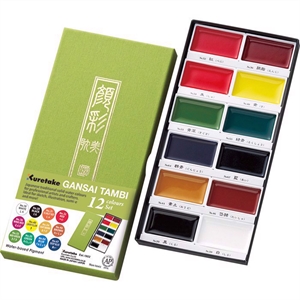 The rich and intense colors of Gansai Tambi are handcrafted, professional-quality pigment inks. These high-caliber watercolors are blendable with a creamy-smooth feel that show up on dark paper. Solid water colors for professional artists and crafters. Ideal for sketch, illustration, sumi-e and more.