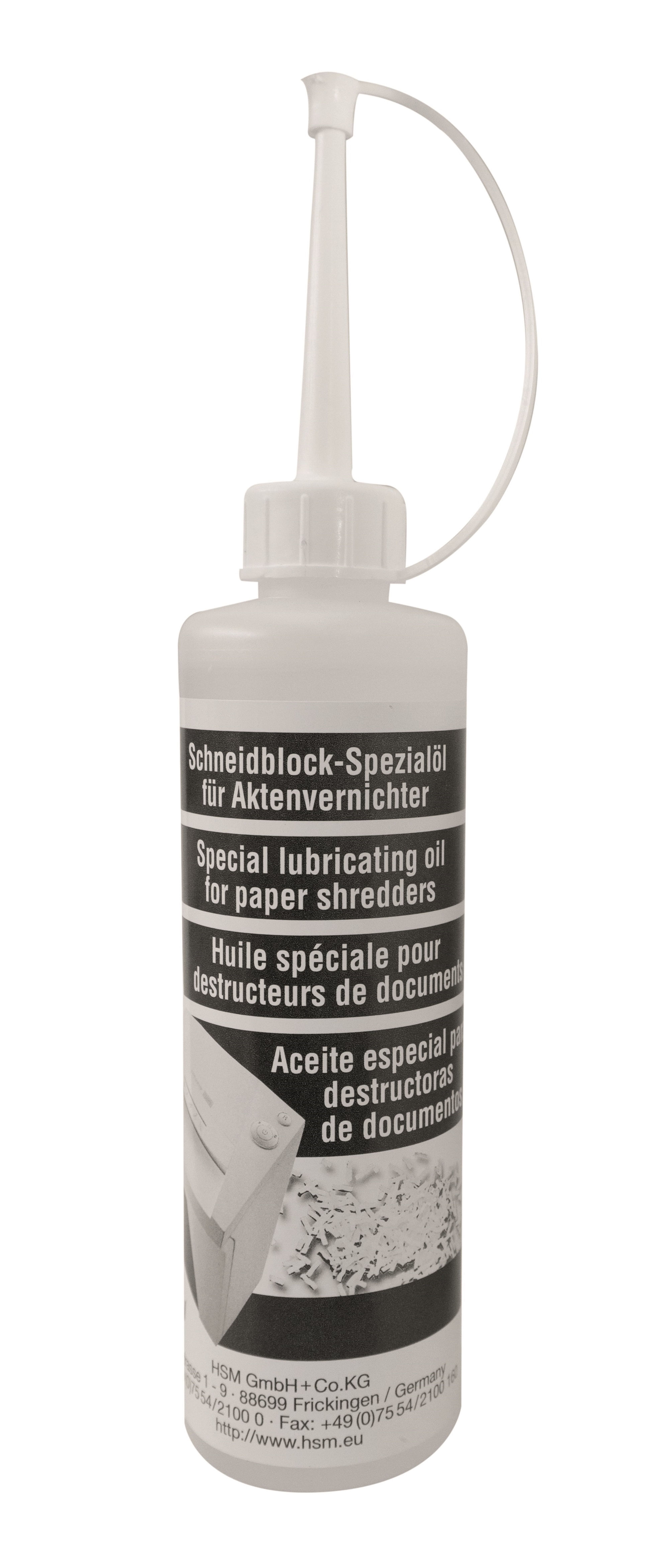 Beskrivelse af HSM makulator olie til skærrehoved 250ml