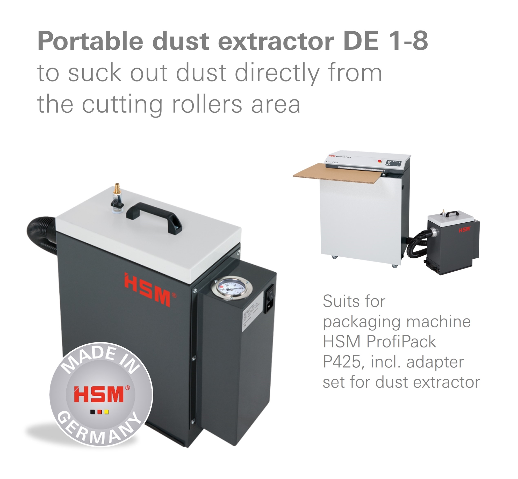 • Den kompakte og højtydende støvudskiller i støvklasse M er det perfekte supplement til ren drift af emballagepolstringsmaskinen HSM ProfiPack P425. Karton- og støvpartikler udsuges effektivt.• Støvudskilleren kan sluttes til emballagepolstringsmaskine HSM ProfiPack P425, inkl. adaptionssæt til udsugning.• De værdifulde materialer og kvalitet "Made in Germany" garanterer sikkerhed og lang levetid.• Støvudskillerens kompakte konstruktion sparer plads.• Den lydsvage drift minimerer støjudviklingen på arbejdspladsen.• Driften er særligt økonomisk på grund af den genanvendelige filterpatron.• Den integrerede trykluftsrengøringsdyse gør det nemt at rengøre den permanente filterpatron.• Støvudskilleren opfylder kravene i støvklasse M.• Den simple støvbortskaffelse udføres via en samleskuffe med en opsamlingsbeholder, der nemt kan tages ud.• Støvudskilleren har en vekselstrømstilslutning.• Takket være bæregrebet kan apparatet anvendes mobilt.