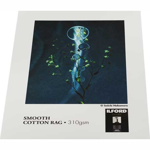 • Ilford Galerie Smooth Cotton Rag-papir viser vejen for professionelt kunsttryk. Med 100 % bomuldskludepapir er papiret blevet fremstillet specielt til at imødekomme behovene hos kunstfotografer. Det er til dem der ønsker tillid til deres medier som skal levere nøjagtige og dynamiske resultater gang på gang. Uden optiske blegemidler og den lange levetid, billedstabilitet og en ren mat overflade, der kræves for det allerbedste inden for kunstudskrivning, tilbydes Smooth Cotton Rag som det perfekte valg til sprøde detaljer. Både fotografer og trykkerier kan stole på dette nye papir til at producere billeder af højeste kvalitet.