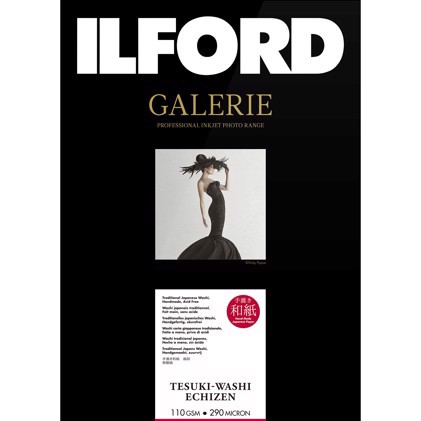 • ILFORD GALERIE Tesuki-Washi EchiZen 110 er ægte håndlavet japansk Washi baseret kunstpapir. Echizen-området, der producerer basispapir, har en washi historie i 1500 år.