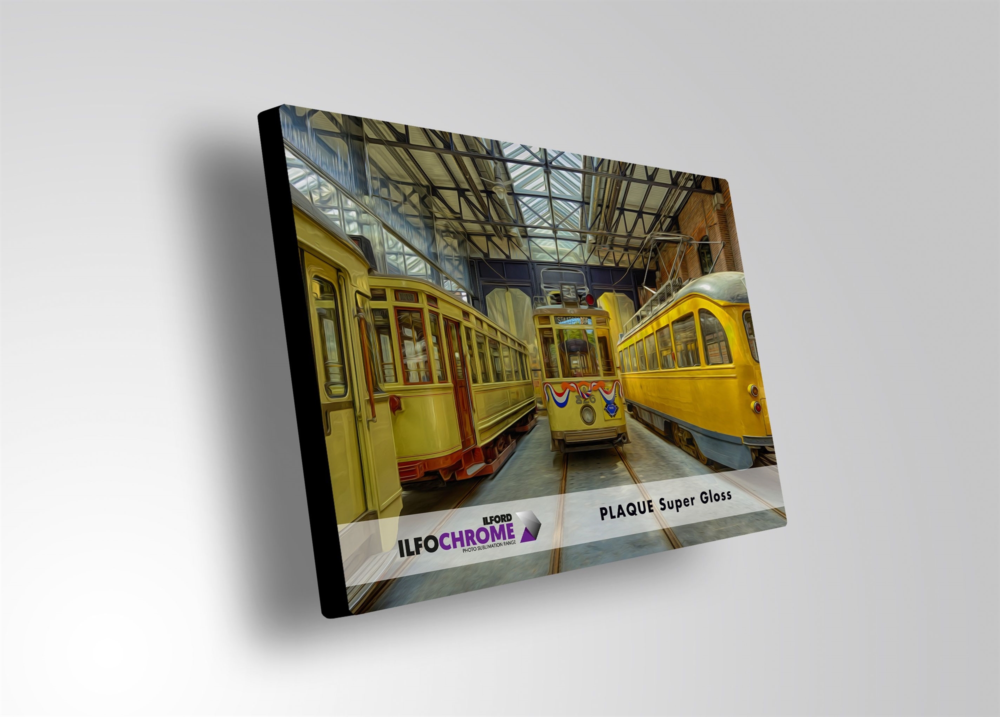 • ILFOCHROME Plaque Super Gloss træfotopaneler har en unik belægning, der giver et meget holdbart fotoprint, og træfinishen giver et meget unikt udseende til det endelige print.