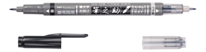 Fudenosuke kalligrafi og "Lettering" pen, med to elastiske penselspidser i henholdsvis sort og grå. Yderst velegnet til kalligrafi, sketches, lettering etc. stregens tykkelse kan varieres ved at ændre presset på pennen. Blækket er vandbaseret og lugtfrit. Linje bredde: op til 3 mm