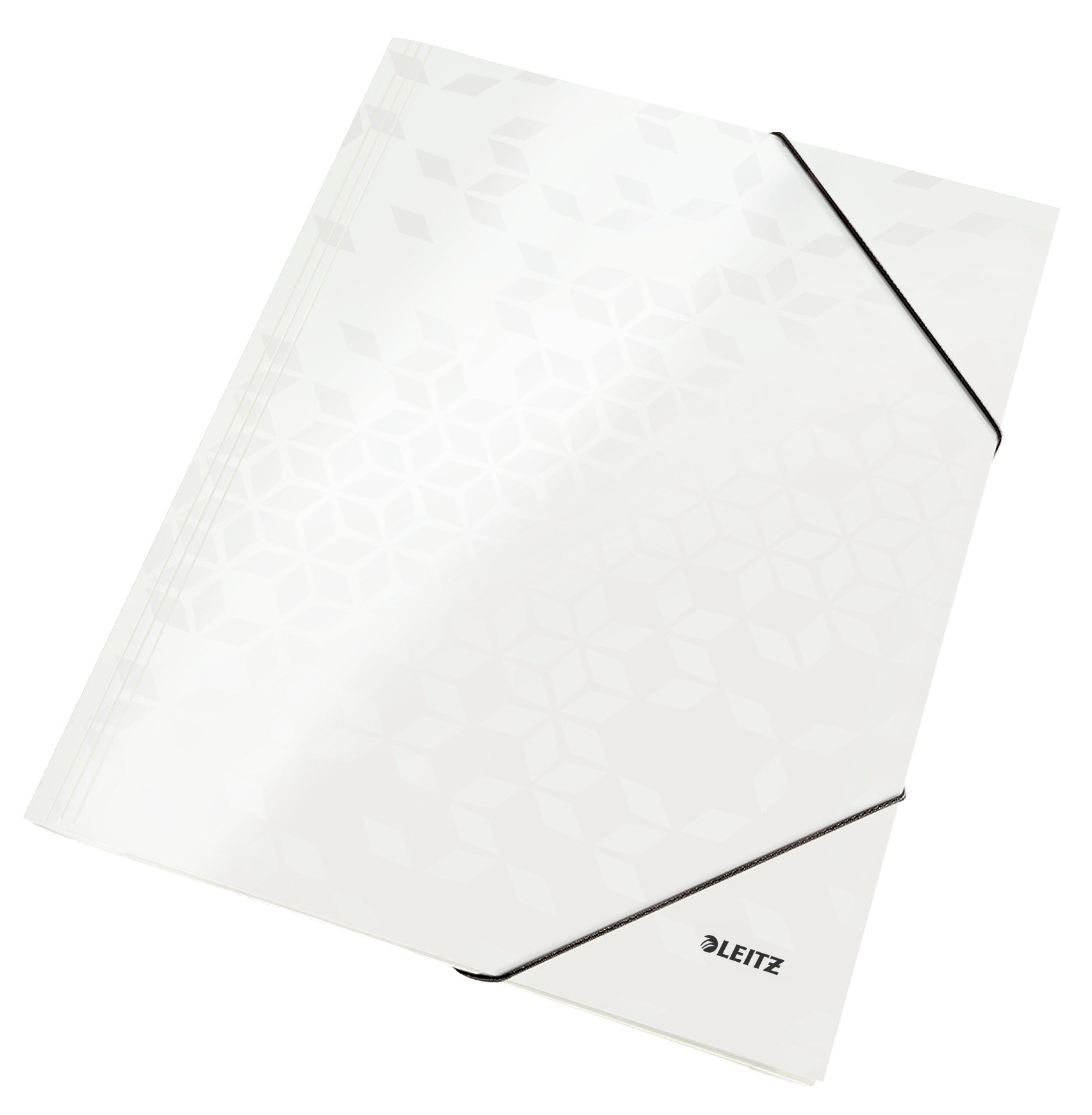 Beskrivelse af Leitz 3-klap elastikmappe WOW A4 perlehvid