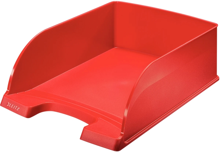 • Brevbakke Leitz Plus Jumbo, rød Robust brevbakke i høj kvalitet og stor kapacitet. En del af Leitz modul serien hvor de 3 størrelser kan stables enten lodret eller forskudt. Design og farvekoordineret med Leitz Plus serien. Nem opbevaring til selv meget tykke dokumenter Den stærkeste brevbakke designet til at holde Fleksibel løsning til skrivebordet kombineret med Leitz Plus brevbakke Slim, Standard og skuffemodul Praktisk organisering med lodret eller forskudt stabling Stor central åbning giver nem adgang til dokumenter Design og print din egen label på www.leitz-easyprint.com