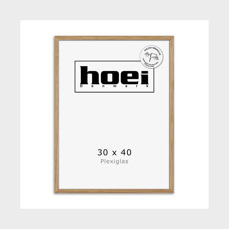 Beskrivelse af Massiv egetræsramme til foto og plakater 30 x 40 PLEXI cm