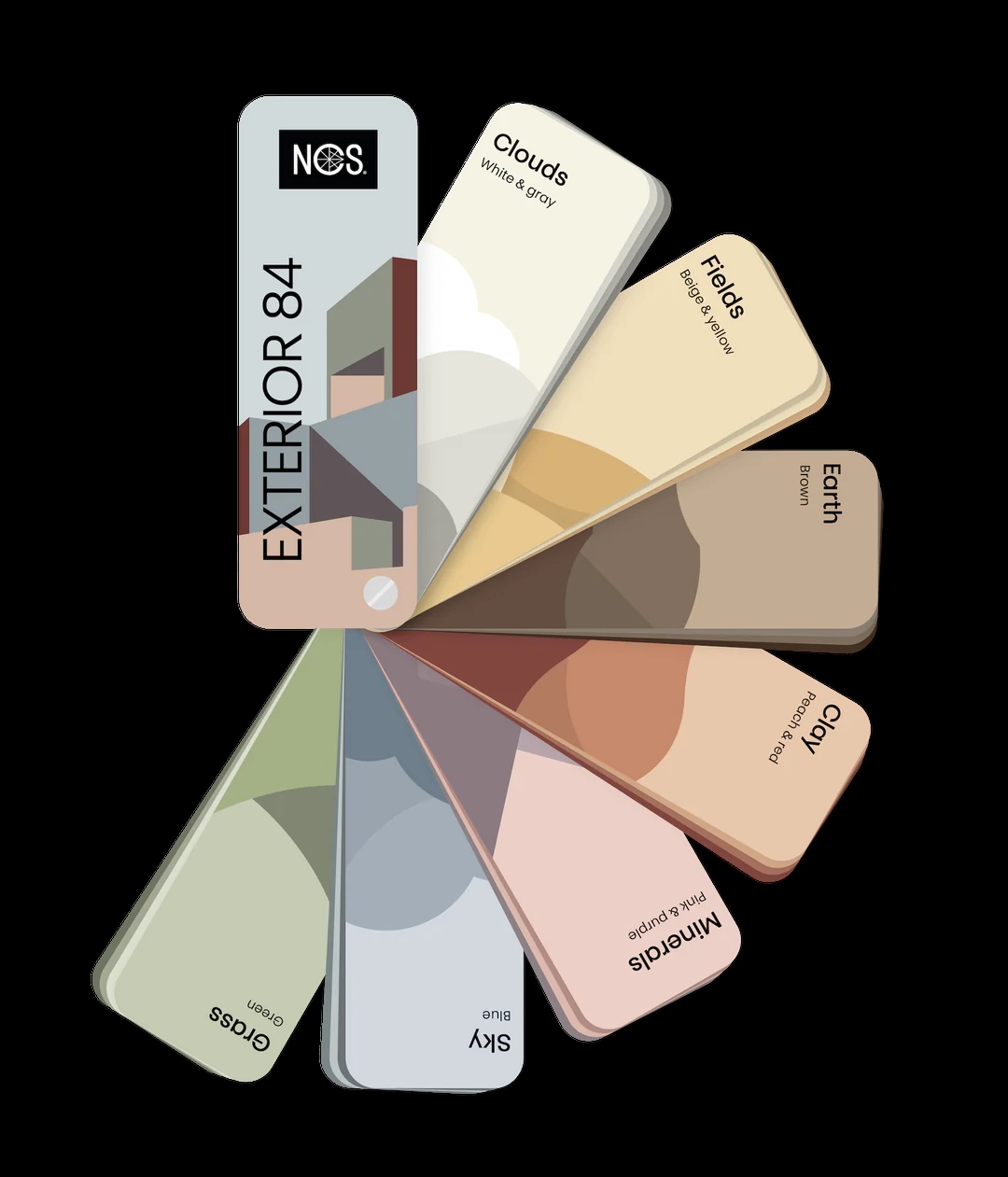 • NCS Exterior 84 er en eksklusiv farvekollektion skabt specielt til udendørs brug. Hver nuance er nøje udvalgt baseret på omfattende forskning og markedsanalyse for at sikre det bedste resultat på facader og andre udendørs overflader.