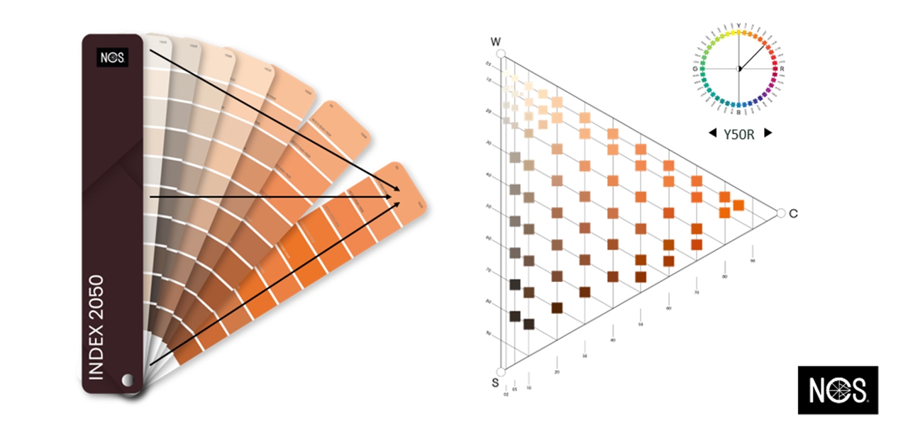 • The NCS Index 2050 offers therefore a hue-based sorting, following the NCS Colour Circle, to allow navigation among the 2050 colours quick and easy.