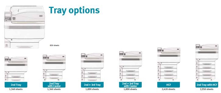 Inputkapacitet: Standard 530 ark, udvidbar op til 2.950 ark