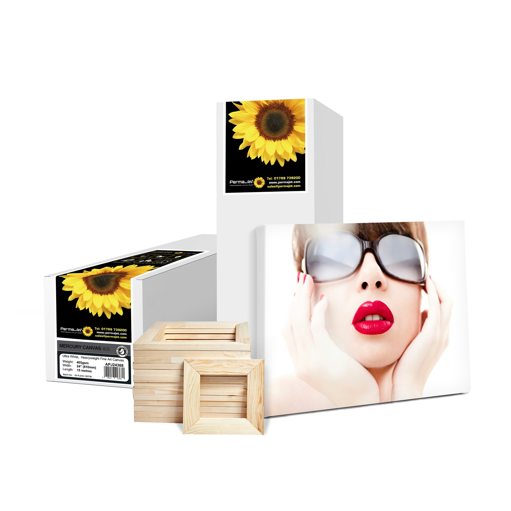 • PermaJet Mercury Canvas 405 er et tungt, professionelt inkjetlærred med en lys, hvid base og en mat overflade. Den tætvævede struktur og høje vægt giver et eksklusivt udtryk og gør det ideelt til gallerier, kunstnere og fotografer, der kræver det ypperste i printkvalitet og holdbarhed.