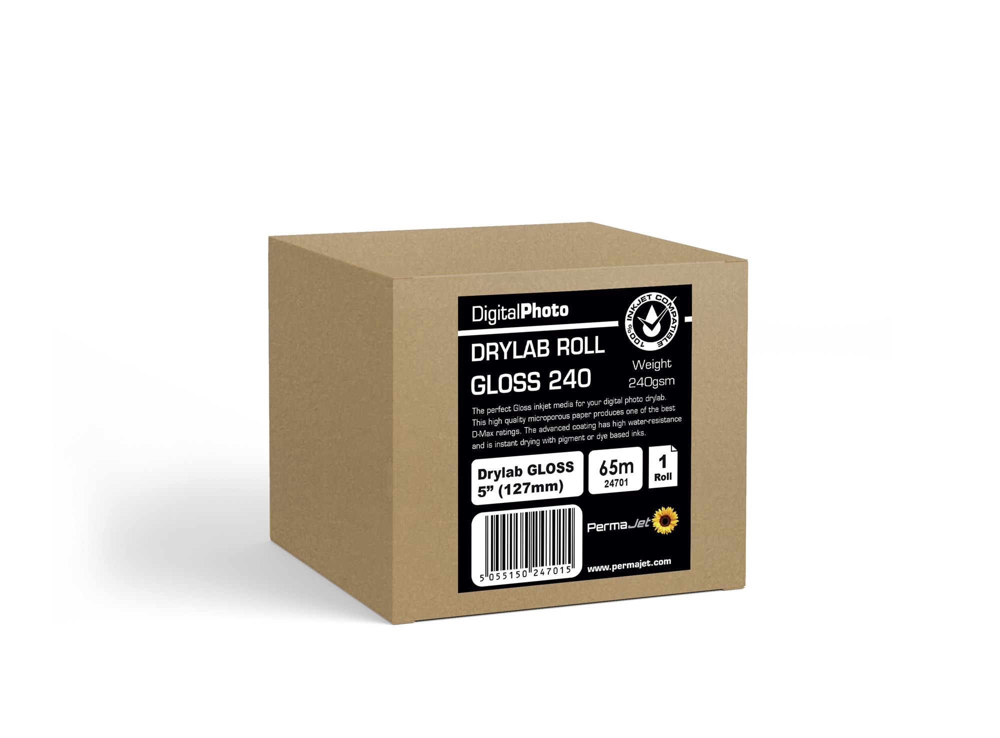 Beskrivelse af Permajet P70 Premium Gloss Drylab Roll 240 g/m² - 5'' (12,7 cm) x 65 meter