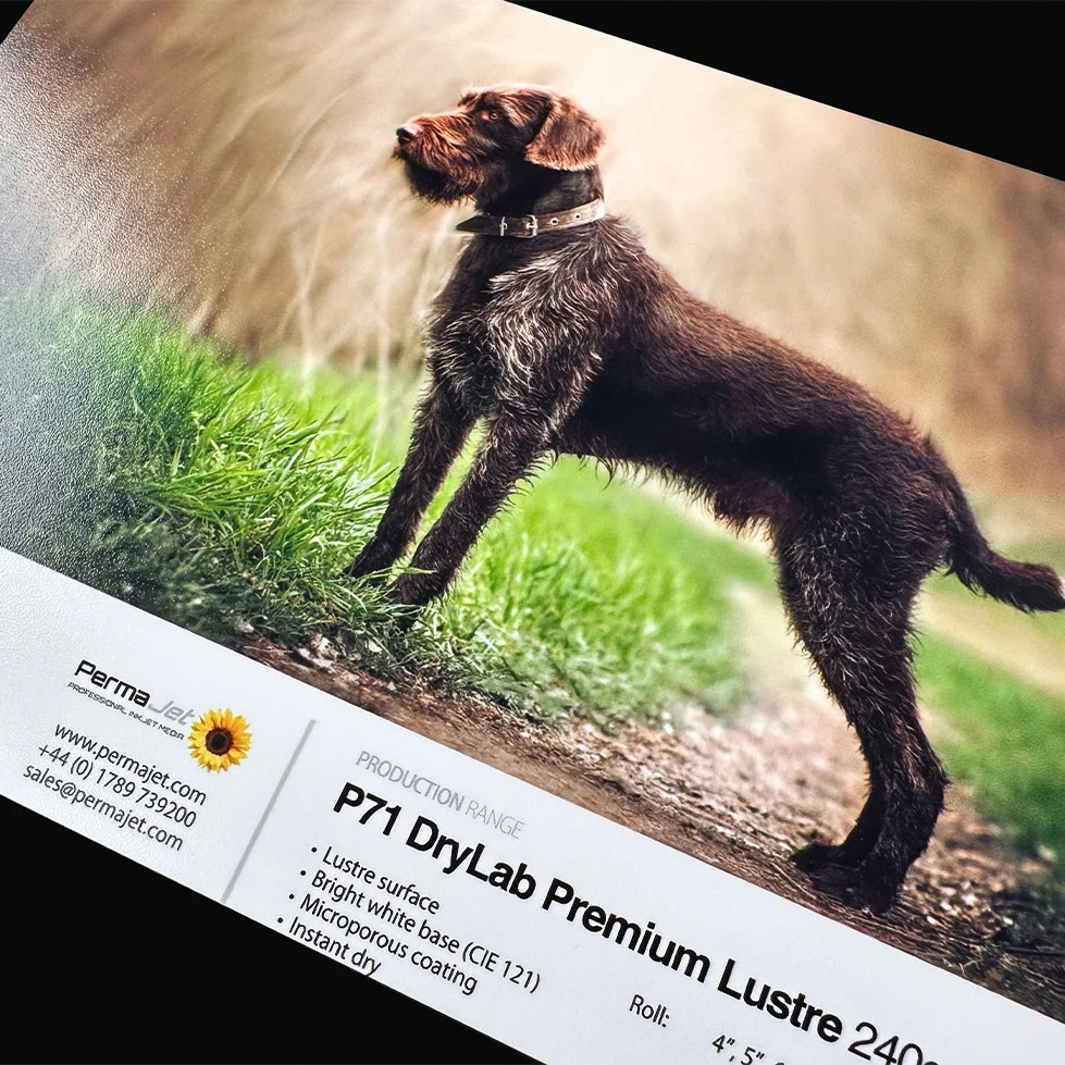 • PermaJet P71 Premium Lustre Drylab 240 er et professionelt inkjetpapir til Drylab- og minilab-printere som Noritsu og Fuji. Med en elegant satin/lustre-overflade og en lys hvid base er det det perfekte valg til dem, der ønsker en sofistikeret fotofinish uden refleksionerne fra højglanspapir.