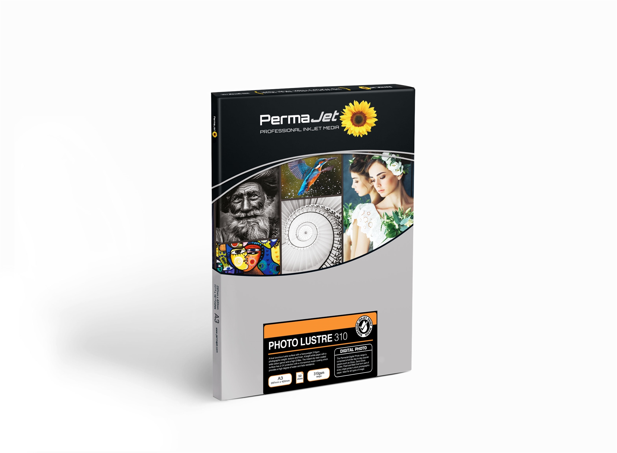 • PermaJet Photo Lustre 310 er et professionelt inkjetpapir med en klar hvid base og en eksklusiv lustre-overflade. Farver fremstår dybe og mættede, mens sort/hvid-billeder gengives med imponerende tonalt omfang og kontrast. Den høje Dmax giver rige sorte med tydelig skyggedetalje, og den diskrete lustre-finish tilfører ekstra klarhed og definition til billedet.