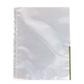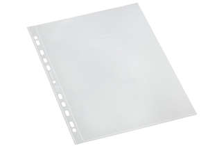 Quality pocket for everyday use. Multi-punched strip allows covenient storage of documents in lever arch files and binders. - Embossed 0.09 mm recyclable PP foil, copysafe - Top and left opening - 11 holes for universal use - For A4 format