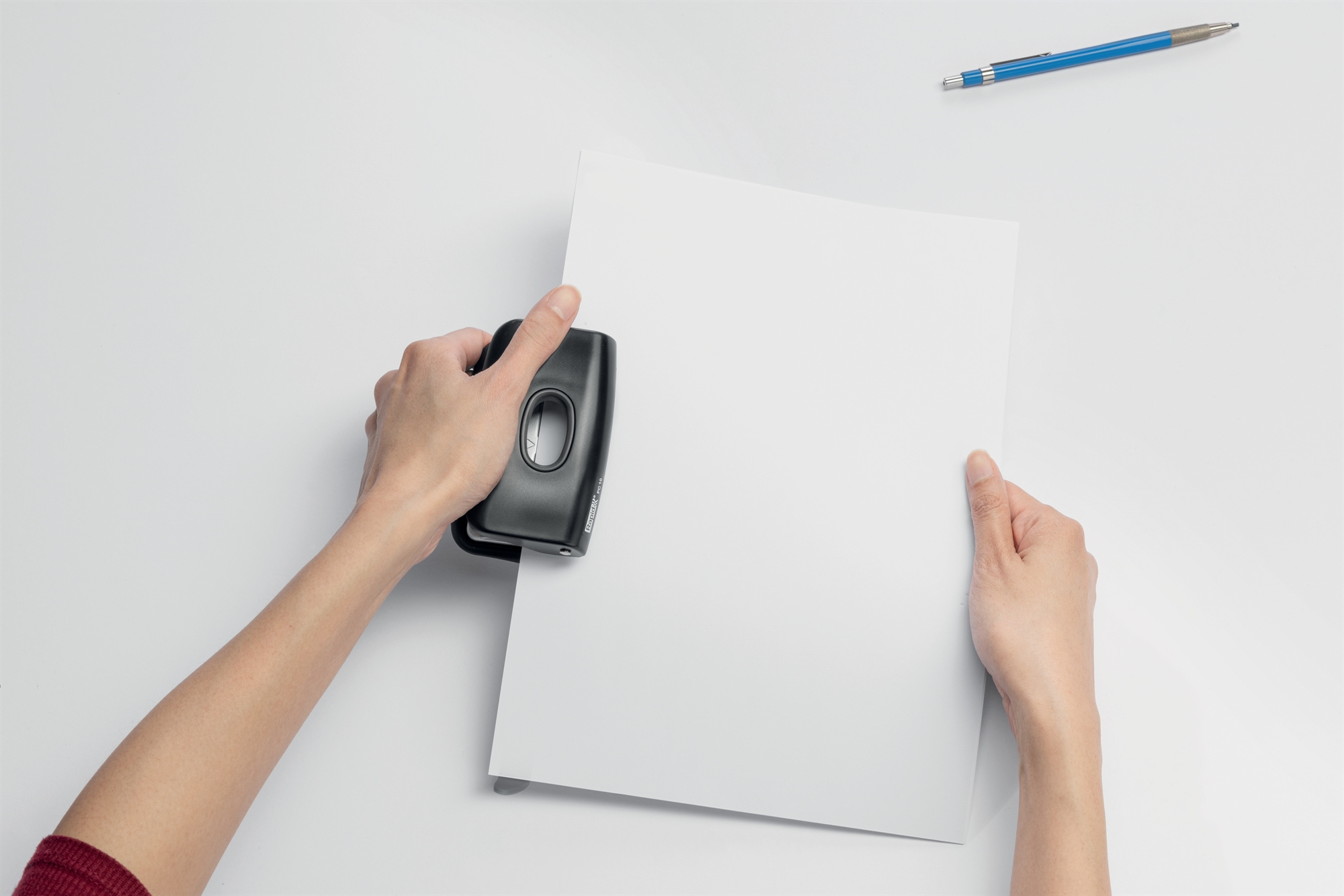 • Stærkt metal hulapparat med greb og base i forstærket ABS plastik. Til hjemmet eller skolebrug. - Huller op til 10 ark (80 g) - Handy, bærbart og stærkt - Forstærket ABS plastik greb og base - Integreret, let-at-tømme, konfetti beholder i plastik basen