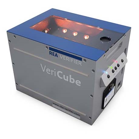• REA VeriCube IR (infrarød) er en state-of-the-art matrix- og stregkodebekræftelsesenhed, som kan bruges på tværs af alle industrisektorer. Uanset om liggende, stående eller fra top til bund, kan stort set enhver testprøve måles kontaktfrit i optimalt måleposition.
